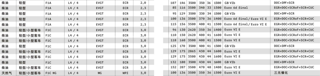 F1系列發(fā)動機適用于柴油、壓縮天然氣(CNG)/液化天然氣(LNG)與混合動力型號的橫向和縱向安裝。
